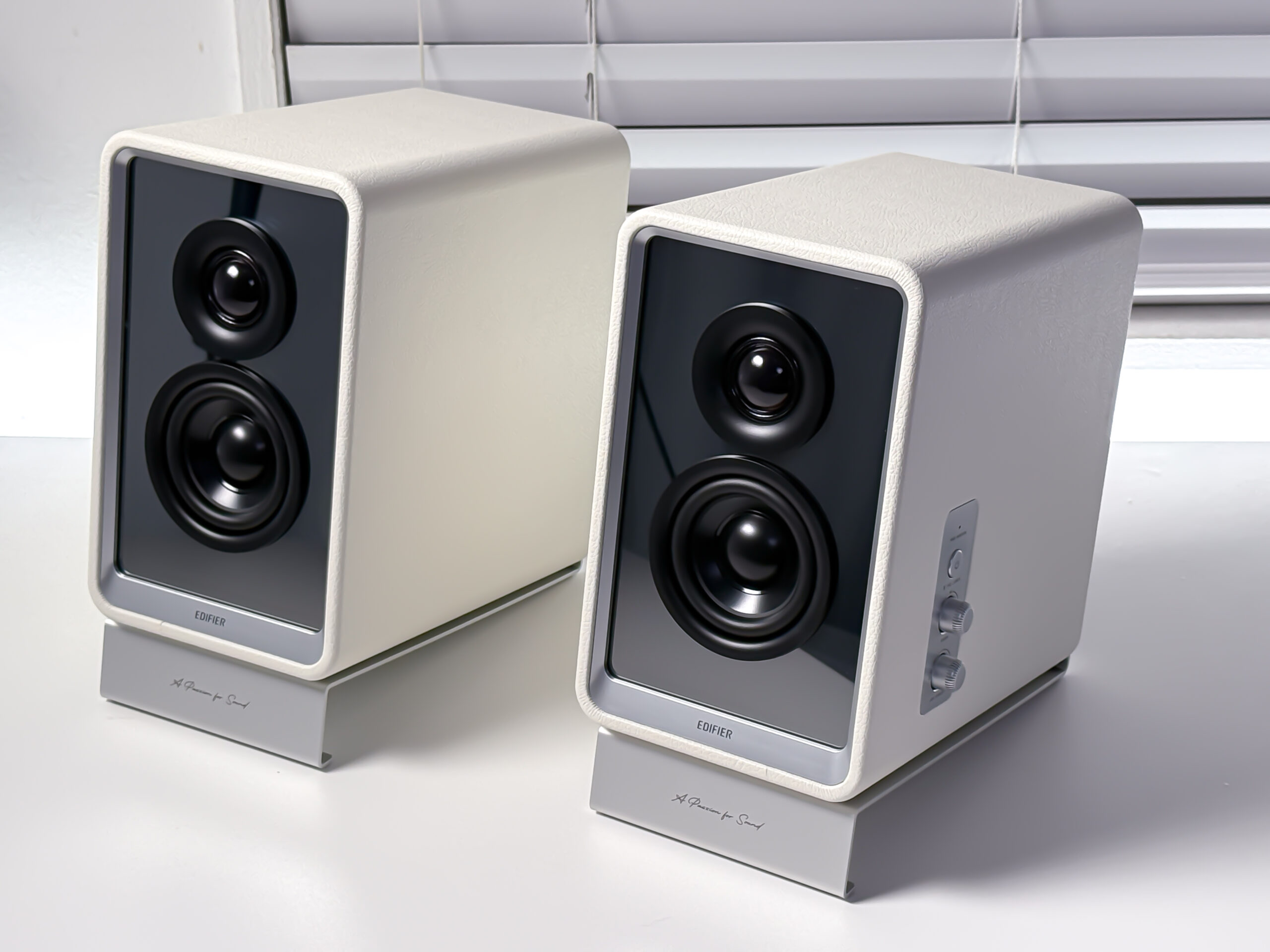 既存のスピーカーとは一線を画すデザイン。個性的で美しく、このデザインはEDIFIER QR65の最大の魅力の一つです。