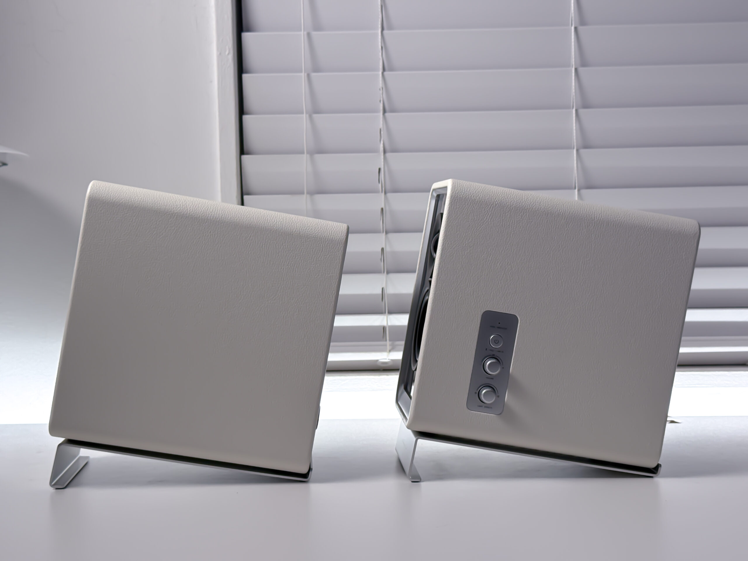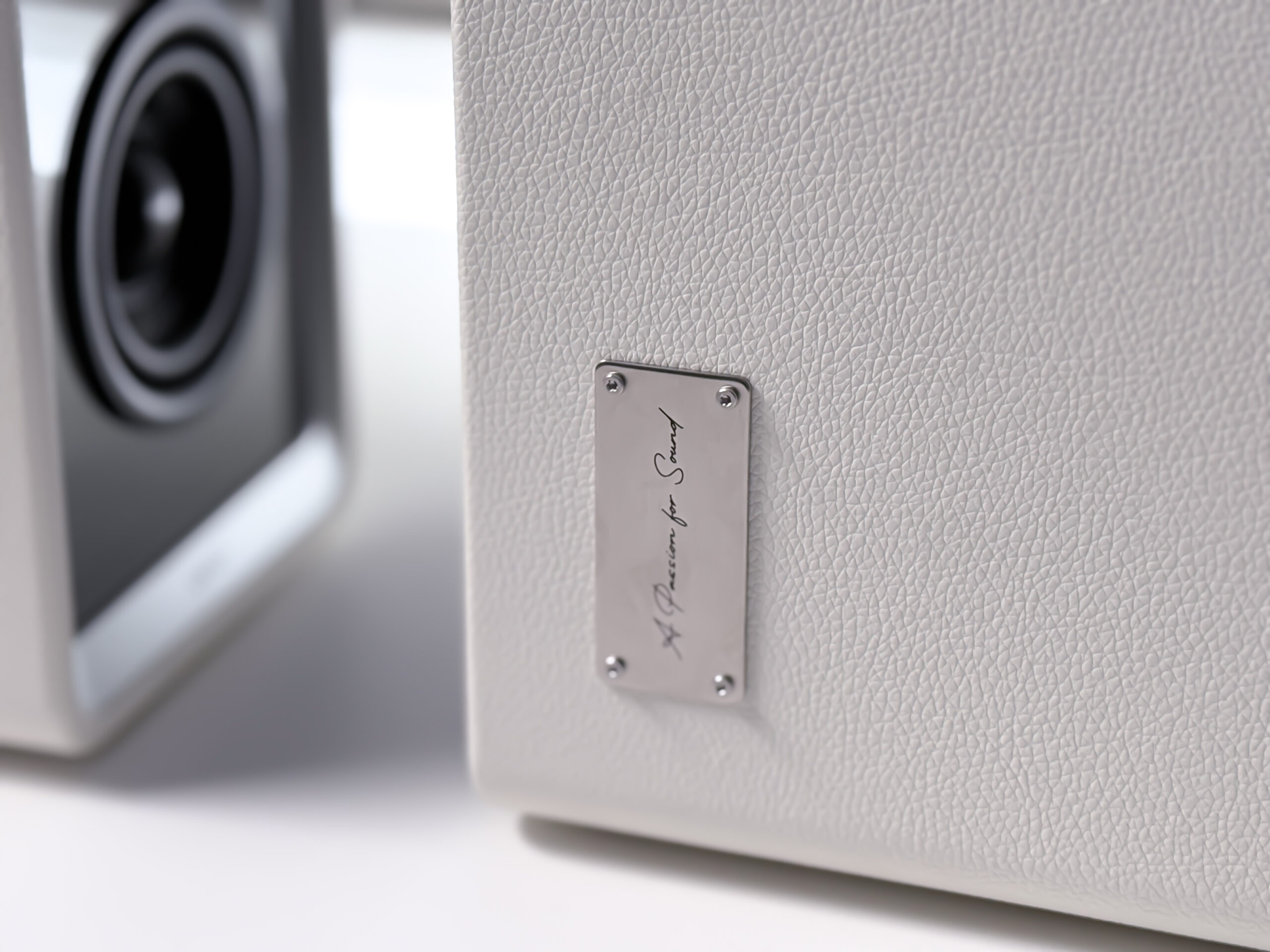 側面は革張り超の仕上げで、高級感のある洗練された質感をしています。2万円前後のスピーカーから買い替える方は、その高級感に驚くと思います。