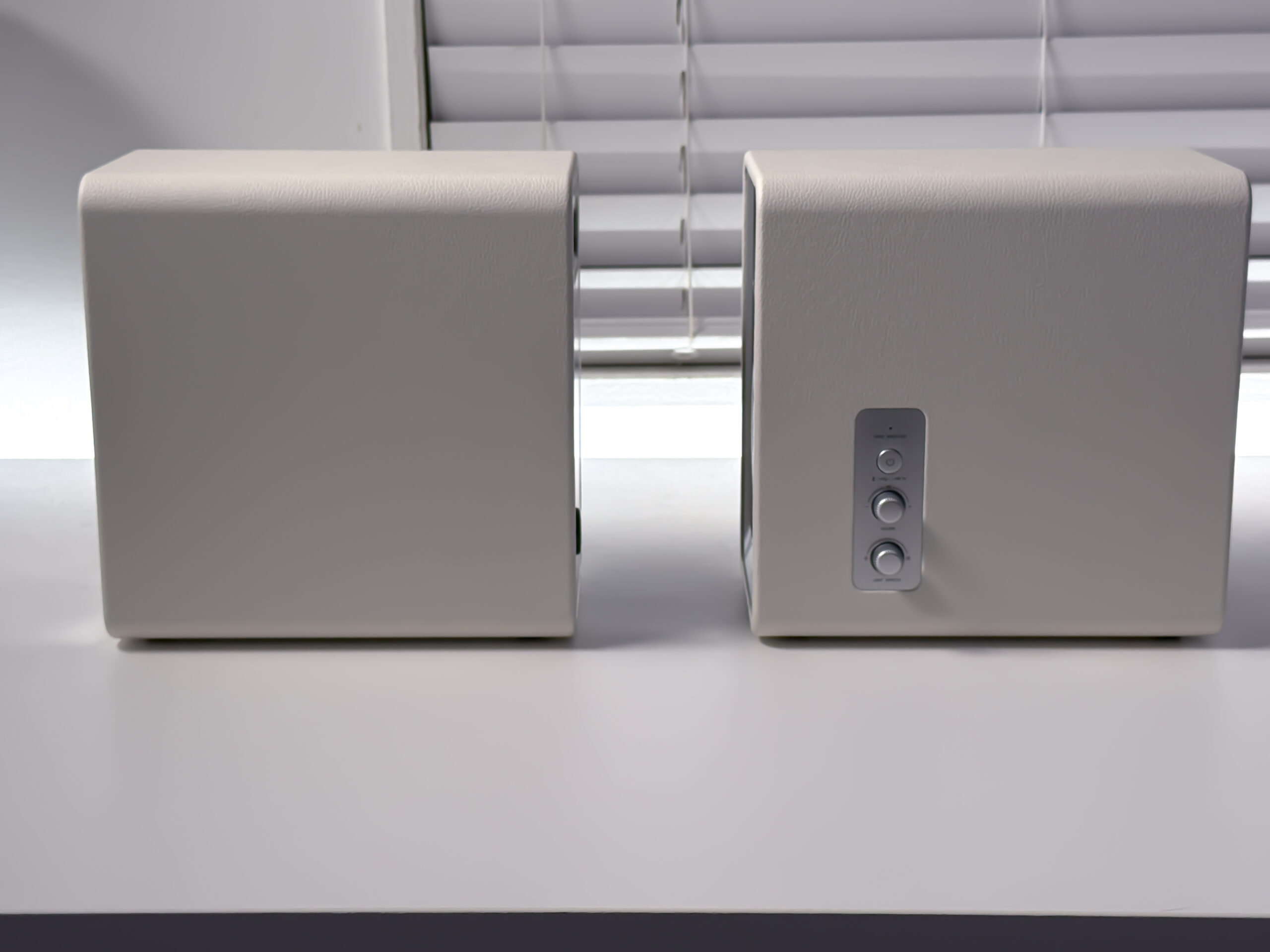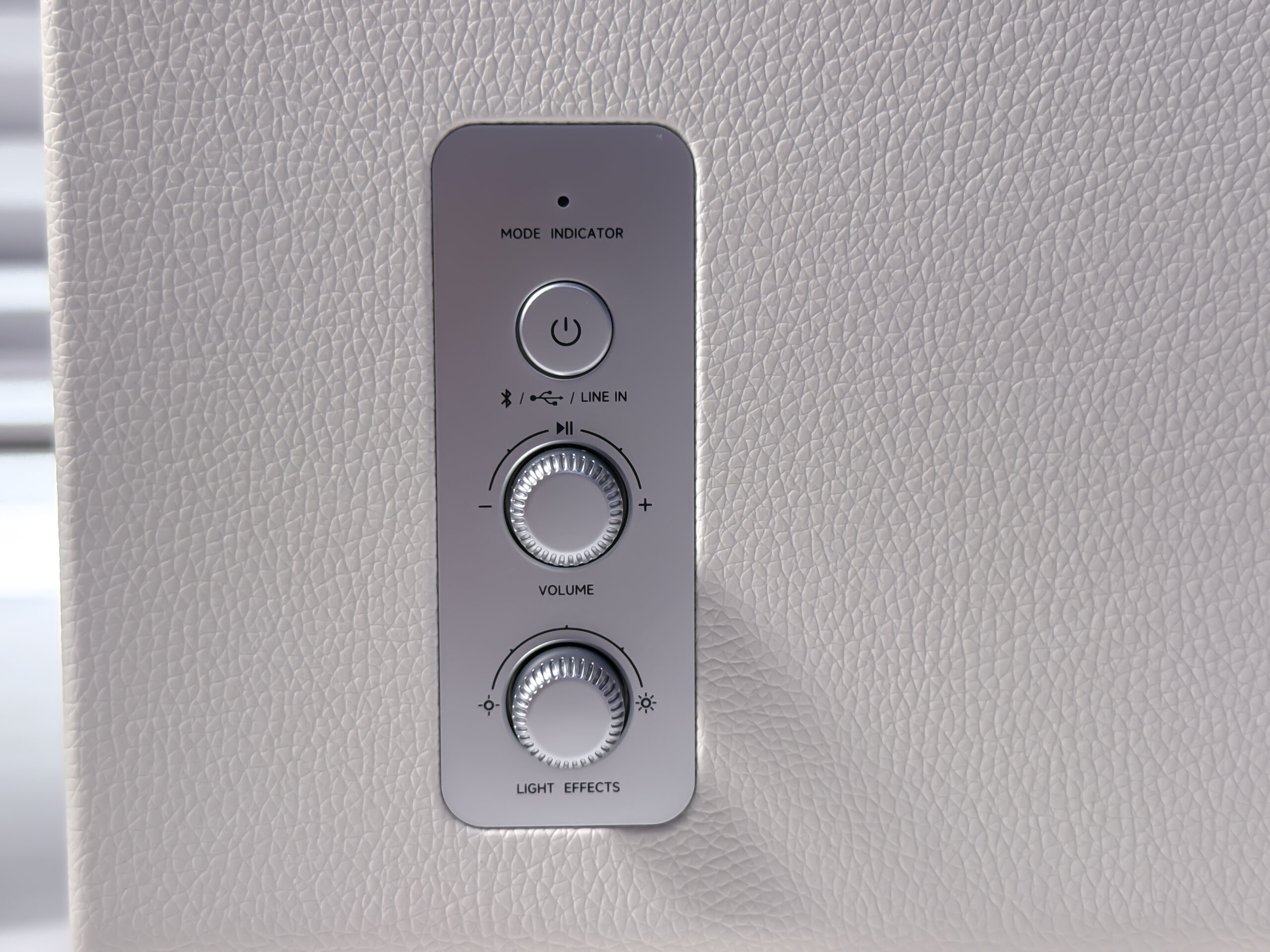 右スピーカー側面には電源ボタン、音量ダイヤル、ライティング調整ダイヤルが搭載されています。