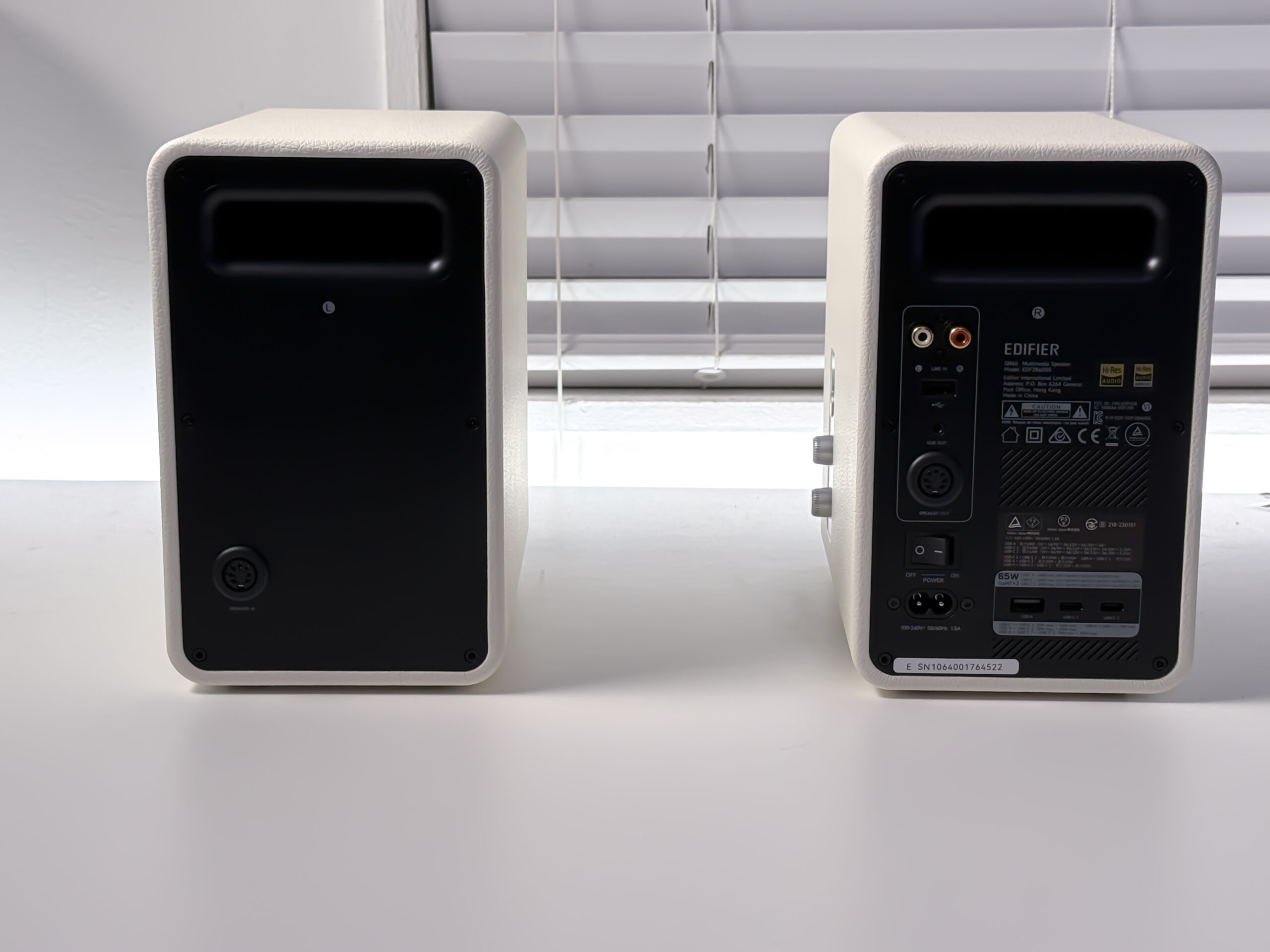 EDIFIER QR65は、高音質なサウンド、革新的なデザイン、そして便利な高速充電機能を融合した多機能アクティブスピーカーです。カラーはブラックとホワイトの2色展開。今回レビューするのはホワイトです。