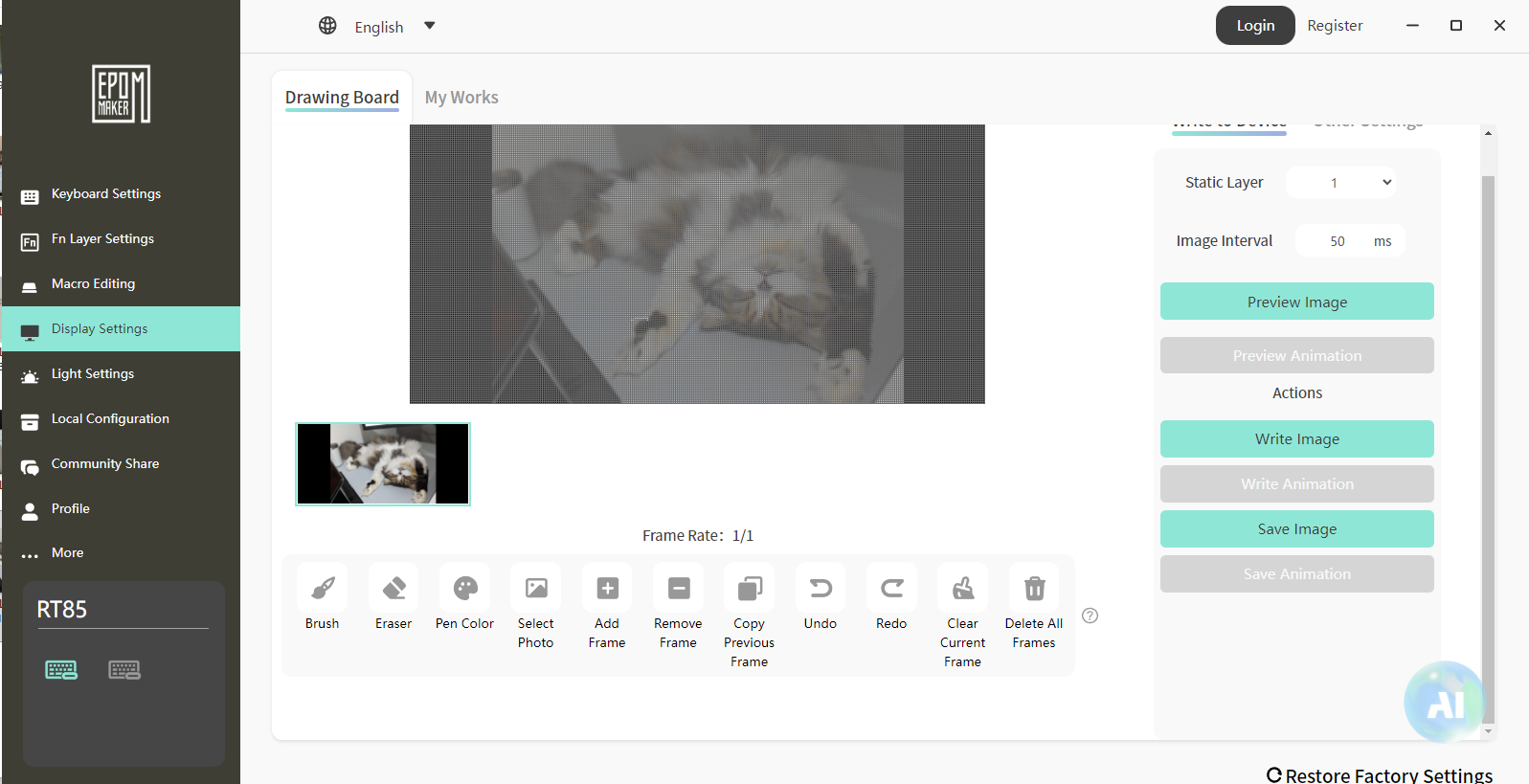 EPOMAKER RT85に搭載されているディスプレイには、時計や日付電池の残量などの他に、お気に入りの画像GIF画像などを表示できます。