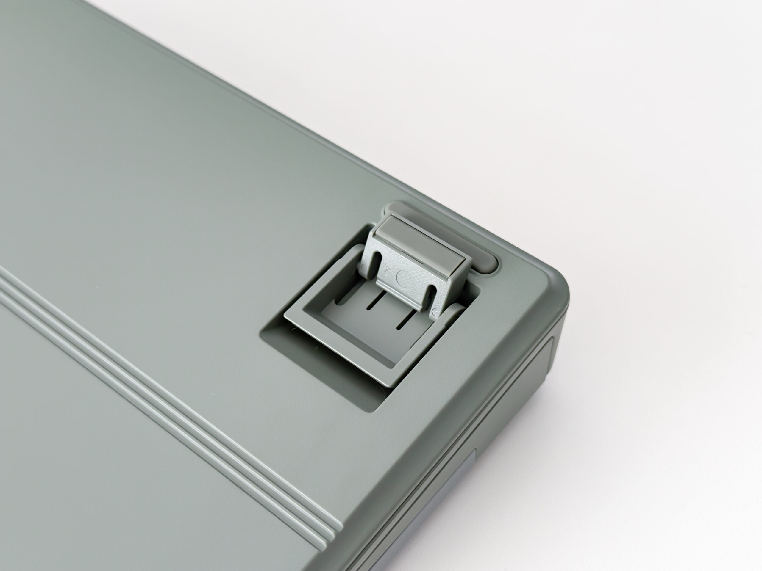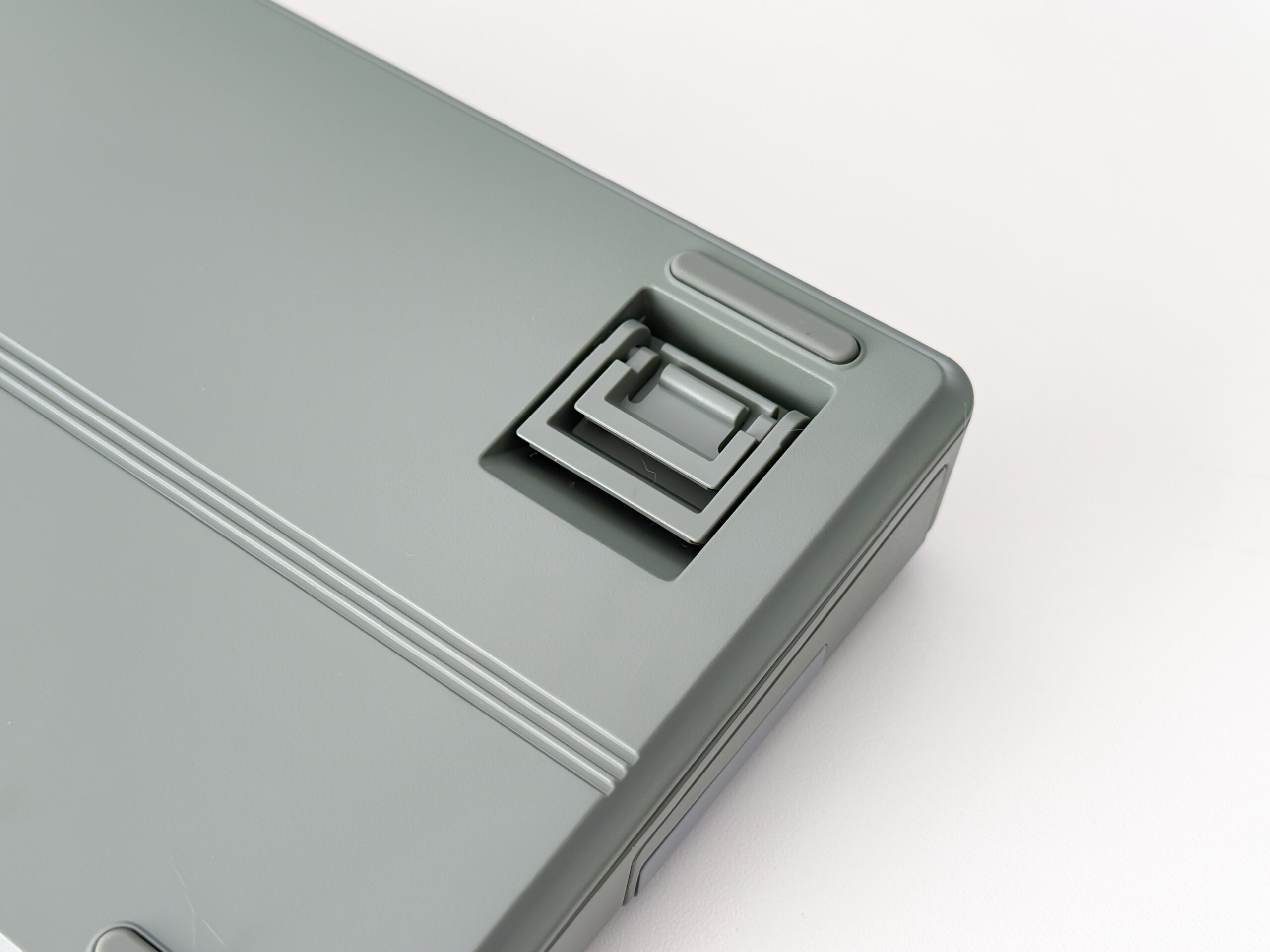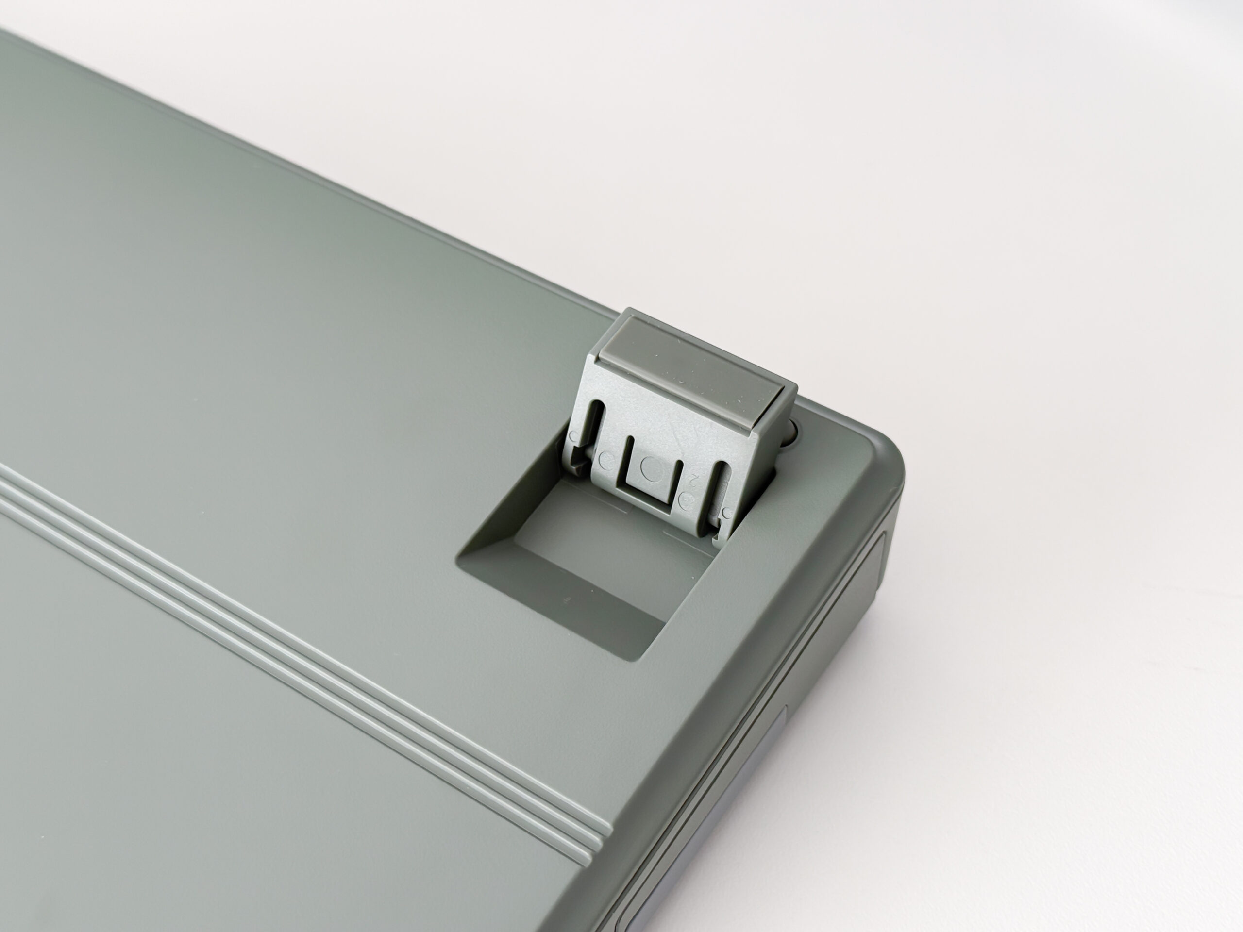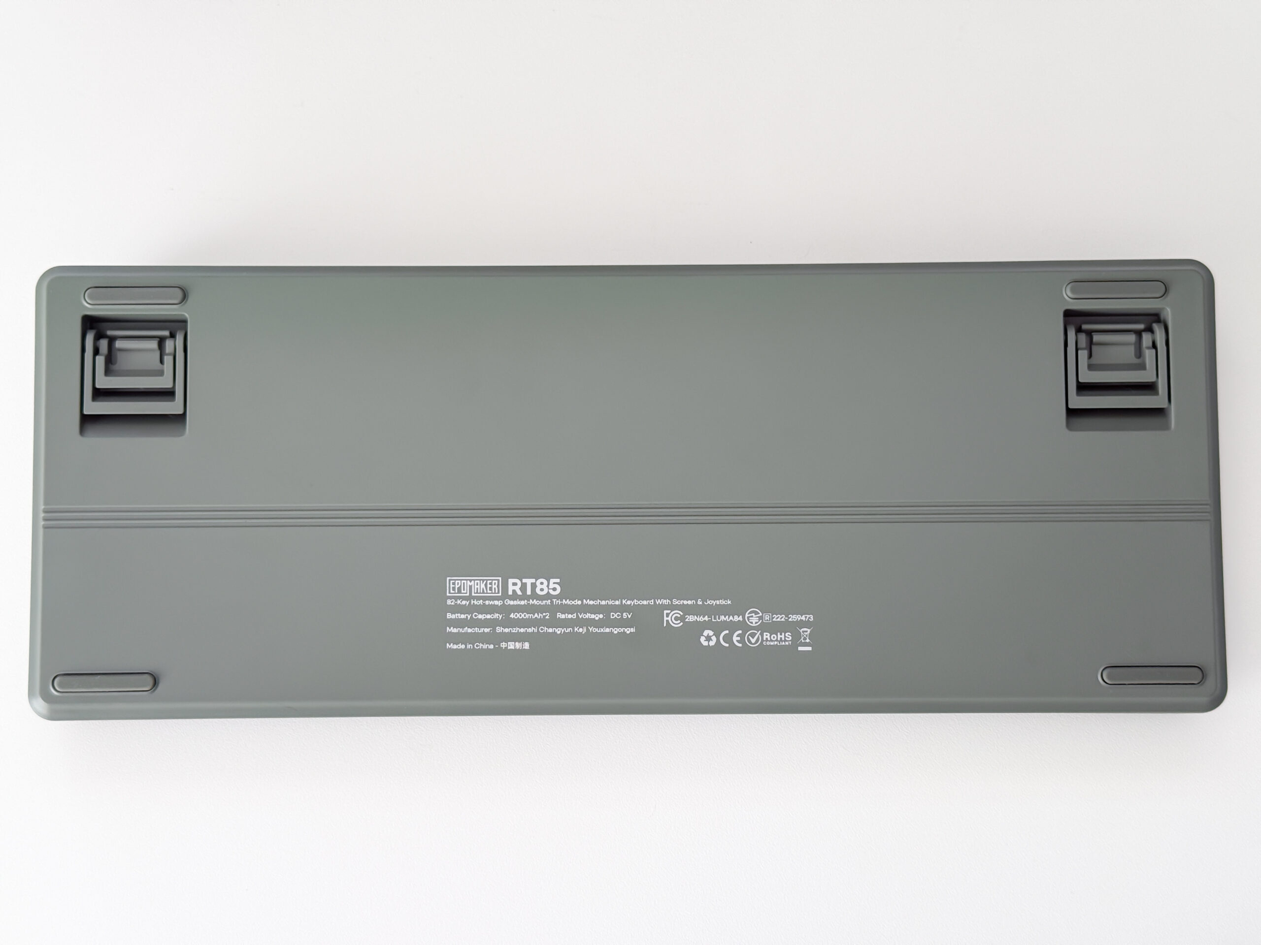 通常、無線レシーバーは裏面や側面に刺さっている場合が多いのですが、EPOMAKER RT85のレシーバーは、マグネット式で脱着可能なカバーの下に格納されています。