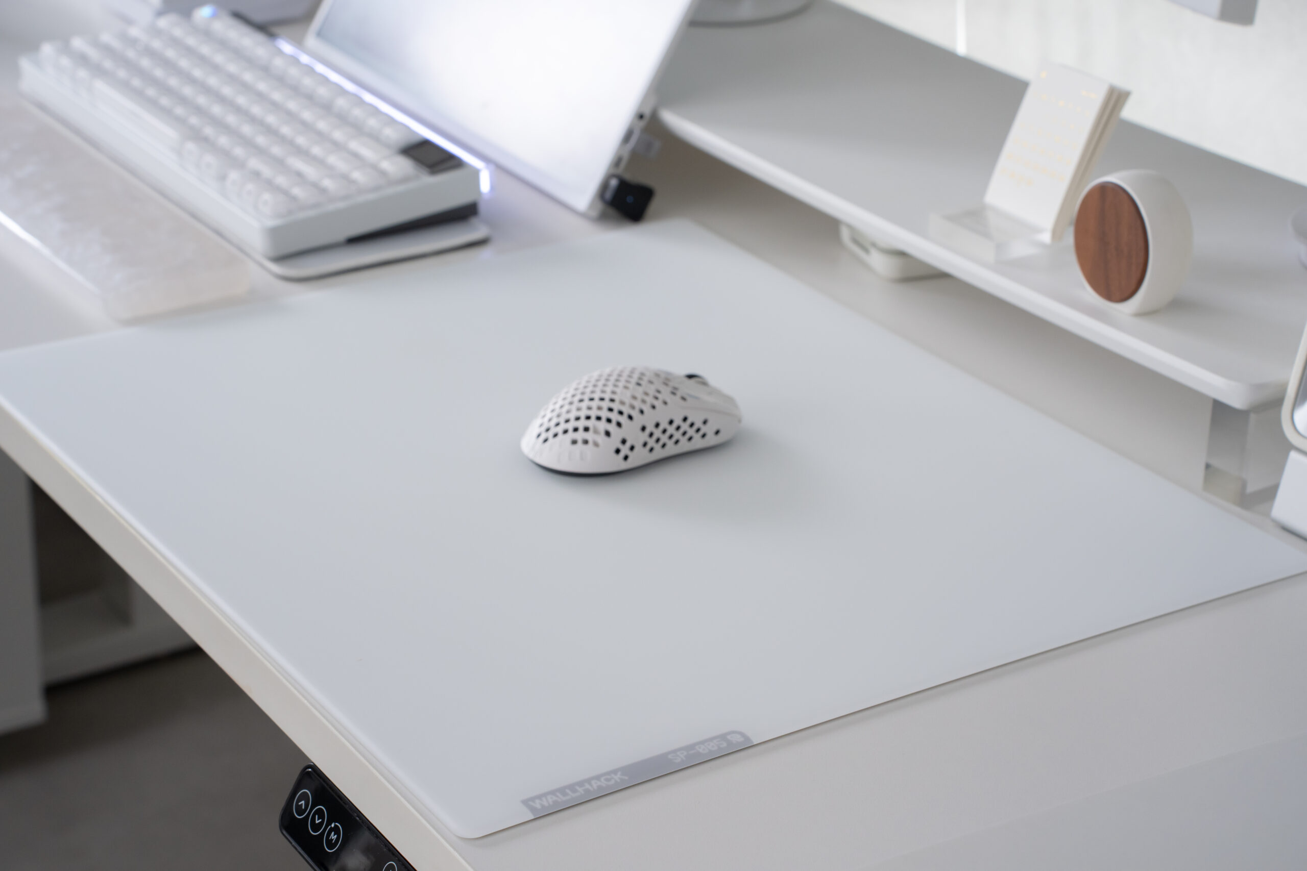WALLHACKの第5世代ガラスマウスパッド「SP‐005」は、滑らかで抵抗の少ない表面加工が特徴のガラスマウスパッド。よく滑る表面は「APEX」や「OW2」などのトラッキング重視のゲームジャンルと特に相性が良いと感じました。